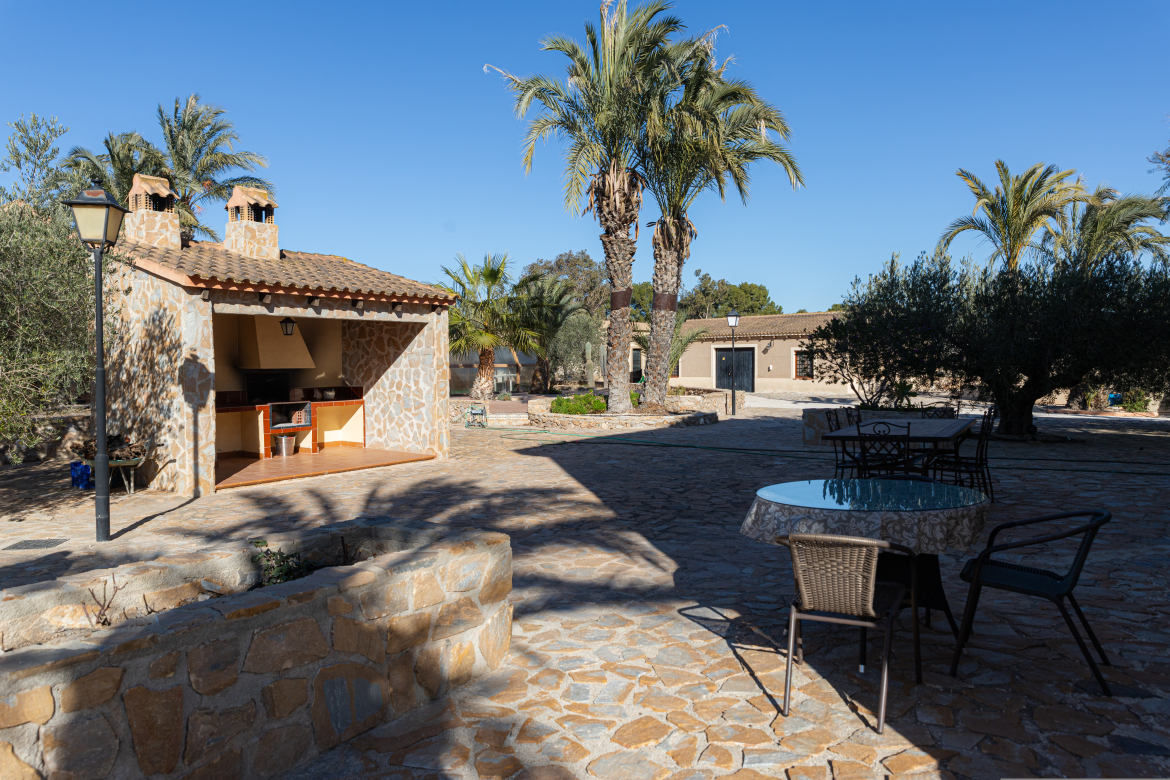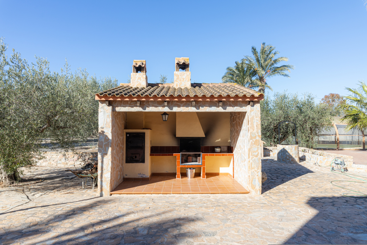 Fantástica finca rústica en el paraje del Ajauque y Rambla Salada, en el témino municipal de Fortuna, espacios protegidos de la Región de Murcia por su gran valor paisajístico. PARCELA TOTAL (ver plano): cuenta con una superficie de 23.713 m2, de regadío, con un embalse de forma geométrica irregular de 1020 m2 y acciones de agua suficiente para su cultivo. Dentro de la misma, se enclava un conjunto edificatorio que ocupa una extensión de 4.600 m2 vallados con muro de piedra, urbanizados y ajardinados. VIVIENDA PRINCIPAL (ver plano): Construida en el año 1900 y reformada en el 1997, se desarrolla en planta baja (124 m2), planta alta (124 m2) y buhardilla (34 m2). En la rehabilitación se ha mantenido el sistema constructivo rural, a la vez que se ha actualizado y adaptado al estilo de vida actual. Estructura de muros de carga, suelos de barro, carpinterías de pino, molduras decorativas tradicionales, cubierta de teja árabe, etc. forman los elementos básicos de la construcción y combinan con otras estancias como la buhardilla de construcción más reciente. EDIFICACIÓN ANEXA (Almacén 1): Junto a la vivienda nos encontramos con una construcción del año 1997, de una sóla planta. Cuenta con una superficie de 114 m2, cubierta de teja sobre tableros de bardos cerámicos y vigas de madera. Se encuentra distribuido en varias dependencias: Garaje, gimnasio, sala de juegos, cabezal de riego, lavandería y baño. PISCINA SALADA: Dispone de una superficie de 45 m2 de forma geométrica irregular, se encuentra cubierta con una pérgola de aluminio, imitación madera, totalmente acristalada con metacrilato y practicable por los laterales. PÉRGOLA: Junto a la piscina destaca una gran pérgola de 36 m2 de diseño exclusivo y realizado con materiales tradicionales, donde disfrutar del aire libre. BARBACOA: Junto a la barbacoa de 10,2 m2 de superficie destaca un gran horno de fundición para las comidas familiares. ALMACÉN 2: Caseta de obra de 27 m2, para guardar las herramientas y materiales de jardinería. VALLADO INTERIOR: Este conjunto edificatorio ocupa una extensión de 4.600 m2, totalmente urbanizado, alternando zonas de rodamiento para paso de vehículos, con zonas pavimentadas, arbolado, jardineras y huerto. Cabe destacar los olivos centenarios que conforman la parcela.