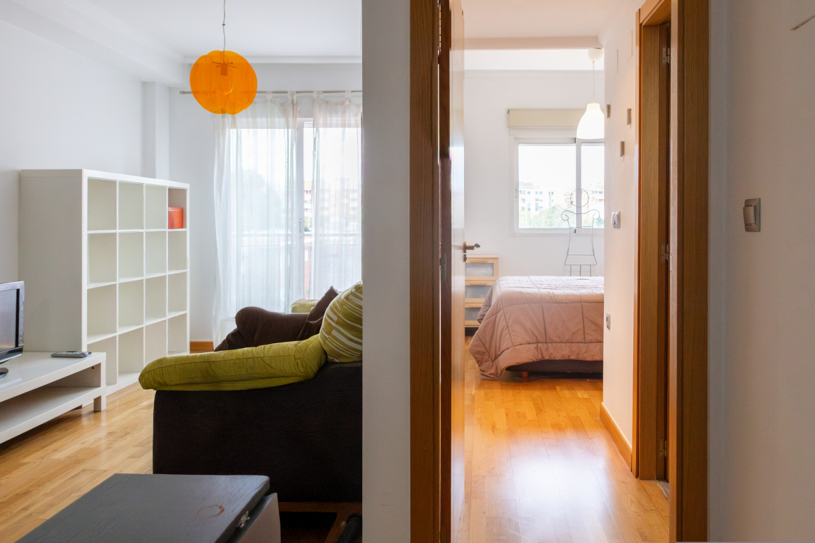 Apartamento luminoso en El Ranero, Avda. San Pedro del Pimatar Ubicación y orientación Apartamento situado en el consolidado barrio de El Ranero, frente al Colegio Juan XXIII. La vivienda se encuentra en segunda planta y dispone de orientación sur, lo que proporciona una excelente entrada de luz natural, además de vistas despejadas. Superficie y distribución (ver plano) La vivienda cuenta con una superficie construida de 50 m² y presenta una distribución funcional y bien aprovechada. Se compone de salón-comedor con cocina americana integrada, balcón con salida desde la zona de estar, un dormitorio independiente y un baño completo. Calidades y equipamiento El edificio fue construido en 2007 y dispone de una cuidada memoria de calidades. La carpintería exterior es de aluminio con doble acristalamiento, las puertas interiores son lisas en madera de roble y el pavimento es de tarima de madera noble también de roble. La vivienda cuenta además con sistema de aire acondicionado centralizado por conductos y cocina totalmente equipada. Aspectos destacables Destaca especialmente la luminosidad natural del apartamento, puesto que las dos estancias dan a fachada, favorecida por su orientación sur, así como sus vistas despejadas y su ubicación dentro de una de las zonas residenciales más consolidadas y valoradas de Murcia.